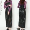 スリット入りで動きやすく綺麗めなスリット合皮ワンピースが登場★キャミワンピなのでトップス次第で雰囲気がガラっと変わります♪キレイめカジュアルな合皮ロングスタイルでデートにも◎