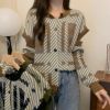 プルオーバー トップス アームウォーマー 柄 トレンド ニット 秋 冬 2230051