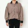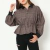 ペプラム ギャザー チェック ブラウス クレリック クレリックシャツ 秋 冬 2230978