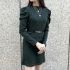 ワンピース リブ ベルト付き 美ウエスト 秋 冬 2243418