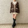 英字のモノグラム柄がオシャレなカーディガンが登場★秋らしいカラーでシーズンムードを高めてくれる◎ゆったりしたサイジングで様々なトップスの上から羽織れるのも嬉しいポイント♪ミニスカートやロングブーツと合わせた今っぽいコーデがオススメです☆