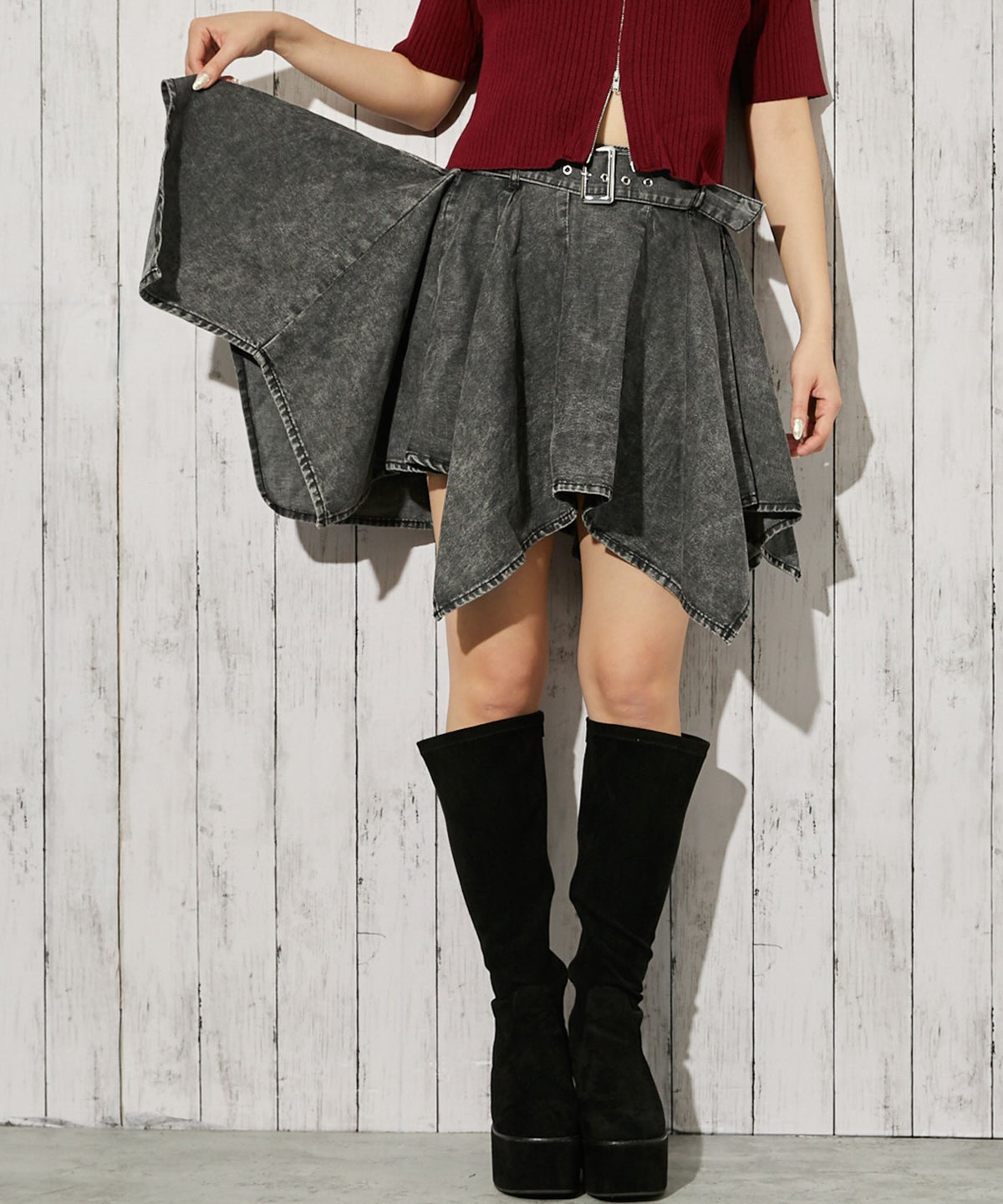 《フェイクレイヤード×シャーリング》カットソー/Y2K/春夏秋/全2色