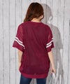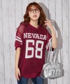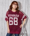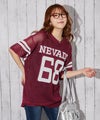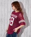 大胆なカレッジロゴとナンバーデザインが目を惹くメッシュニットトップス。