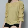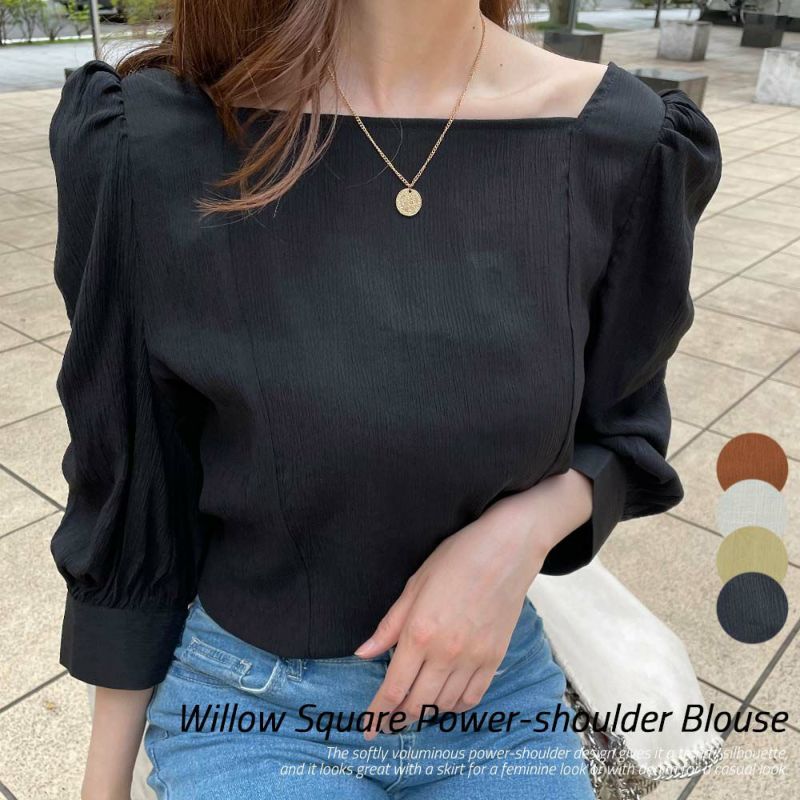 楊柳 スクエア スクエアネック パワショル ブラウス トップス ギャザー 七分袖 インナー 2130003