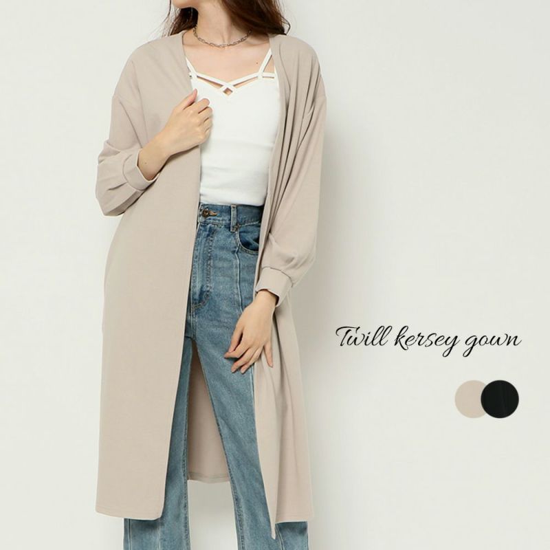 生地はたて糸またはよこ糸を2本以上引きそろえて、 よこ糸やたて糸に交錯して組み合わせて織ったななめに畦が現れることが特徴な綾カルゼ♪光沢がありドレッシーで高級感があるガウンはしわ寄りが少なく着心地がいいです◎シンプルでシックな色合いなので色の濃いデニムに合わせると引き締まります☆