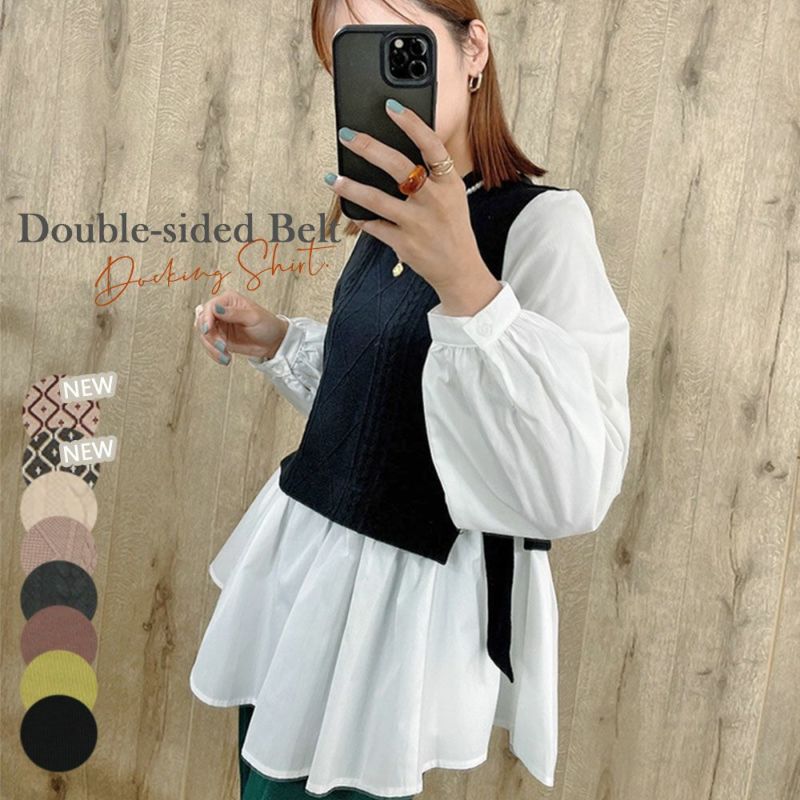 ベルト 両脇 ドッキング トップス プチハイ レイヤード 重ね着 シャツ ブラウス 秋 冬 2131329