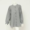 首元はすっきりと襟無しのクルーネック仕様で袖部分はふんわりとボリュームを持たせた、シンプルながらデザイン性のあるブラウスです♪キャミやタンクにさらっと羽織るだけでこなれ感のあるスタイルに◎