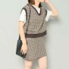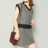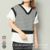 カット ジャガード 柄 ベスト Vネック 幾何学 千鳥 チェック トップス レイヤード 2131815