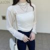 波打ちのように加工されたデザインが女性らしいメローパワーネットトップスが登場★ある程度の強さに動じない強度の高いシアートップス♪光沢感があって可愛らしい☆薄いインナーが今年は大流行中です◎