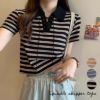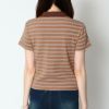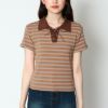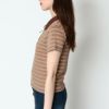 胸元のデザインが靴紐のように交差してオシャレな雰囲気のスピンドルスキッパートップスが登場★キュートなボーダー配色デザインで可愛らしいルックスのアイテム♪海外のカフェにいる女性を彷彿とさせるカジュアルな色合いです◎