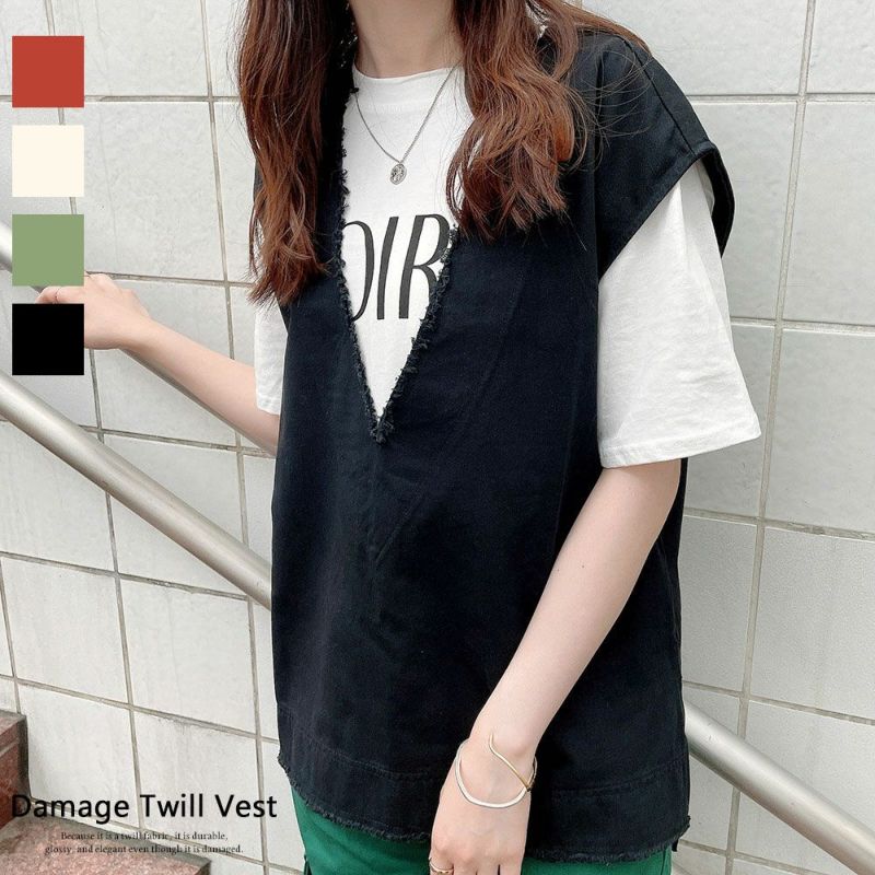 ベスト トップス ダメージ 加工 ツイル 夏 春 2230002