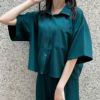 【セットアップ可能】半袖より存在感のあり晩夏も着れちゃう5分袖シャツジャケットが登場★シックなジャケットスタイルでオフィスにも着れる♪中にTシャツを着てカジュアルにまとめてもガラっと印象が変わります◎2230033とのセットアップも可能です☆