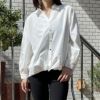 フリントもバックもデザイン性の高いシャツが登場★フロントのひとつひとつ異なったボタンがお洒落でかわいい♪甘めのアイテムなので、デニムと合わせてカジュアルガーリーなスタイルに☆