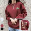 背中に散りばめられたデザインがかわいいカンパニーロゴ裏起毛プルオーバーが登場★裏起毛生地で肌触りふかふか暖かい♪一枚で印象度の高いデザインなのでシンプルなコーデが好きな方にオススメ◎