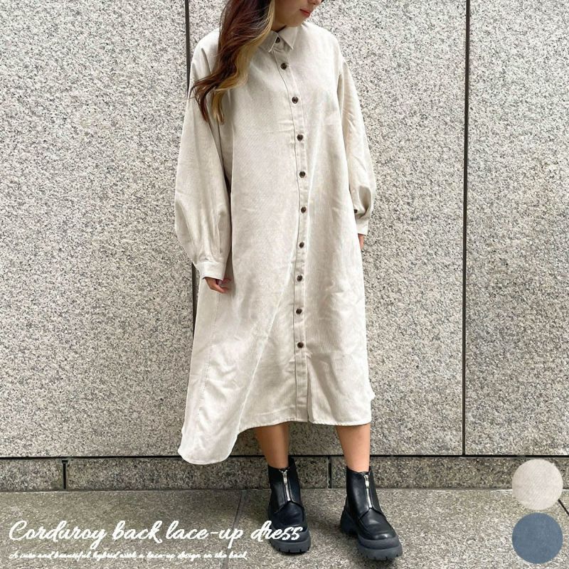 体型スラッ!が手に入るコーデュロイバックレースアップワンピースが登場★背中にレースアップされたデザインでキュートと綺麗めのハイブリット♪コーデュロイ生地とワンピースで秋らしい風貌に◎季節感と新しさを手に入れられるアイテムです☆