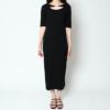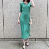 ややタイトめシルエットにビット付きデザインのテレコリブカットアウトワンピースが登場★肉感を拾わずタイトなシルエットを作るアイテム♪私服オフィスやカジュアルランチなどにオススメのメインワンピです◎
