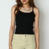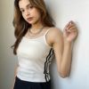 サイドにライン入りのスポーティー且つデイリーライクなラインテレコリブキャミが登場★見せられるインナーなのでゆるっとしたシャツやボレロなどと相性バッチリ♪インナー難民になりやすい夏からシーズン選ばず着れちゃう万能アイテムです◎