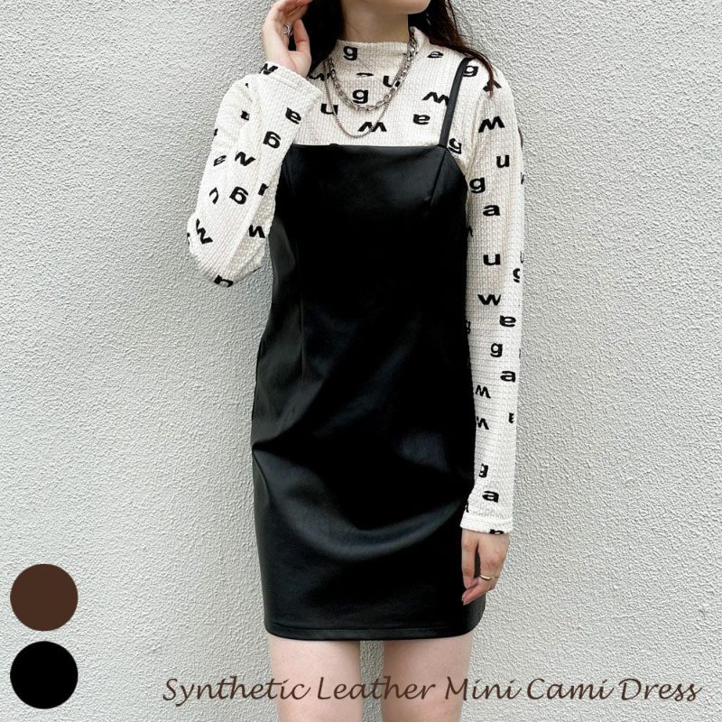 ワンピース キャミワンピ 合成皮革 エコレザー ミニ 秋 冬 2233020