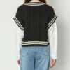 スクールライクで楽ちんドッキングニットベストが登場★ベストとロンTがドッキングされた楽ちんお洒落トップス♪ケーブルデザインが凹凸感を出して高見えする◎デニムやショートパンツなど合わせやすいアイテムです☆