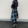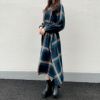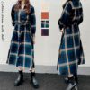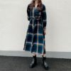 ワンピース ベルト付き 長袖 抜き襟 ギャザー チェック 無地 秋 冬 2236110