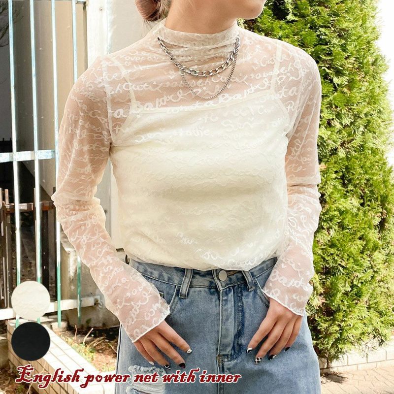 英字が施されたレースのような素材が印象的なパワーネットが登場★伸縮性がありコンパクトながらボディラインを拾いずらい絶妙なシルエット♪インナー付きなので着回しにも困らない◎Tシャツやニットとのレイヤードだけでなく、ワンピースやサロペットのインナーとしても楽しめてオールシーズン使える優秀アイテムです☆