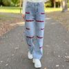 デニム パンツ ボトム 刺繍 サガラ ストレート 春 夏 秋 冬 2310017