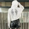 背中の羽が天使のようなデザインの刺しゅうロゴショート裏毛パーカーが登場★ショートタイプの丈感でスタイルアップも期待できるアイテム♪丈感をアピールするならハイウエストのボトムと相性バツグン◎シンプルで大人なルックがシックな印象もあるのでコーデ振り幅の広いアイテムです☆
