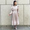 縦ラインのプリーツ加工がスタイルをスラっと細く長く見せてくれる無地フリルシャーリングワンピースが登場★肩のフリルが女性らしいガーリーな雰囲気でかわいい♪無地且つシンプルな色味なのでレースデザインのストールなどと合わせるとより大人ガーリーな印象にUP◎ブーツでもフラットやヒールシューズでも無理せず綺麗めに着れるワンピースです☆