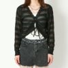 前後2WAYで着用出来る、デザイン調節可能な透かしニットが登場★ドロストがポイントのデザイントップス♪キャミワンピやタンクトップをあわせたシーズンライクな肌見せしたスタイリングが楽しめる◎ドロストはその日のコーデに合わせて調節出来るのがGOOD!前後で雰囲気をガラリと変えられる2WAY仕様です☆