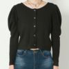 クシュっとした袖のギャザーがかわいいトップスが登場★前後でネックラインが異なり、クルーネックとスクエアネックの両方を楽しめる♪パワショルのボリュームスリーブで腕の細見えを演出◎スカートやハイウエストのジーンズに合わせていただくとスタイルアップ効果が期待できます☆