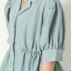 ウエストをゴムで絞った女性らしいシャツブラウスが登場★ハイウエスト仕様でスタイルアップも狙えるトップス♪スタイリングをこなれた印象に仕上げてくれる開襟デザインで抜け感をプラス◎小さいながらも存在感のある多種ボタンで華やかさをプラスしてくれるおしゃれなアイテムです☆