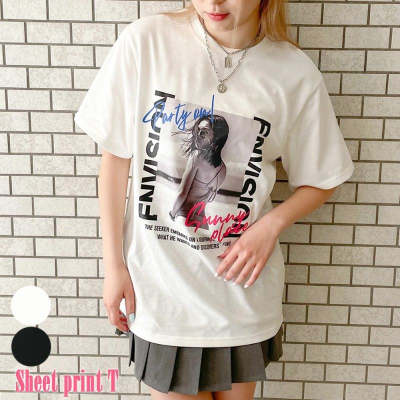 Tシャツ トップス 写真 ロゴ プリント 春 夏 2323297