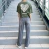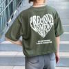 存在感たっぷりのハート型の発泡ロゴプリントをバックにあしらったTシャツが登場★バックにはグラフィックデザイン、フロントにはワンポイントロゴと前後抜かりないデザイン♪薄手のやわらかな生地で着心地も快適◎ワイドな身幅に短めの着丈でバランスのとりやすいサイジングなのでボトムスを選びません☆