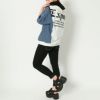 斜めに切り替えたケミカルデニムと転写プリントで個性派ルックに仕上げたパーカーが登場★エッジのきいたロゴデザインもクールなアクセントをプラス♪ボリュームのあるスリーブやオーバーシルエットで華奢見せ効果も期待大◎ショートパンツを合わせてワンピース風にスタイリングするのもおすすめです☆