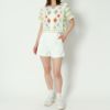 カラフルな花柄刺しゅうのクロシェ編みで大人ガーリーに仕上げたカーディガンが登場★アーガイルやボーダーなどの柄をMIXした華やかな存在感のあるデザイン♪顔周りをすっきり見せてくれるVネックもポイント◎ショート丈でスタイルアップ効果も期待でき、シンプルなワンピースと合わせたりとコーディネートのアクセント使いにも活躍してくれるアイテムです☆