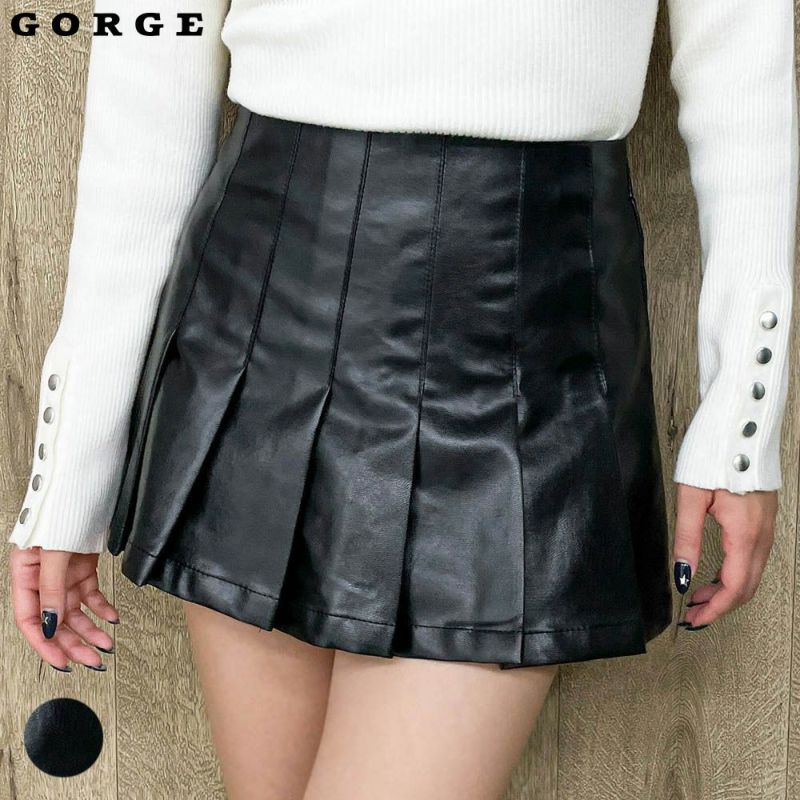 スカート ボトム ミニ フェイクレザー きれいめ 黒 秋 冬 2334044
