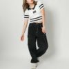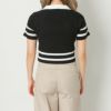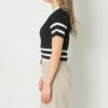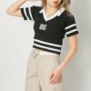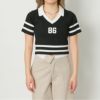 スポーティーライクなナンバーワッペンと2本ラインのデザインが可愛いニットトップス。大きめなリブニット地に衿を付けることで都会的な印象をプラス★ハイウエストボトムと相性バツグンなクロップド丈とVネックでナチュラルな肌見せが叶います。