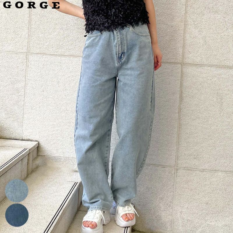 厚みとハリを持たせたデニム生地を使用し、ほどよいコクーンシルエットで仕立てたカーブパンツ。ハイウエスト仕様でお腹や腰まわりをスッキリとさせ、スタイルアップ効果も◎ショート丈やコンパクトなトップスと合わせてメリハリをつけるのがおすすめ♪