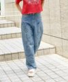ラフなタッチで描かれたイラストは、まるで自由気ままな落書きのような感覚で、穿くだけで気分もアップ♪モチーフはハートやスマイル、メッセージなどキャッチーな要素が満載で、どの角度から見ても楽しめるデザイン。ワイドでリラックス感のあるシルエットが今っぽく、トレンドのY2Kやストリートコーデにもぴったりフィットします。ウォッシュ加工による程よいヴィンテージ感も、こなれた雰囲気をプラス◎