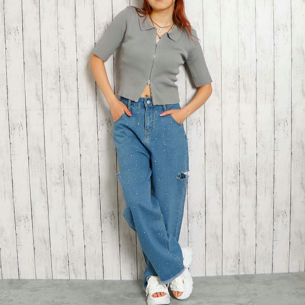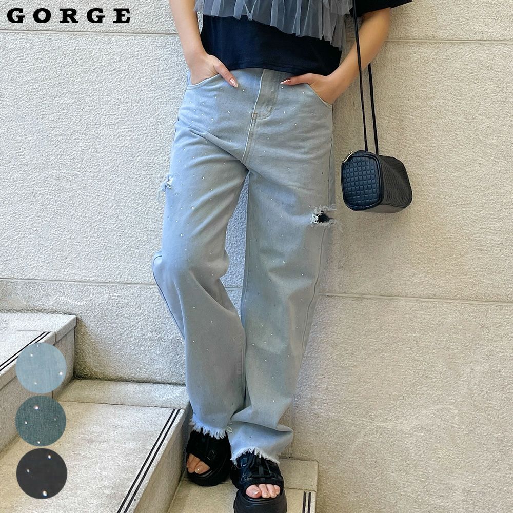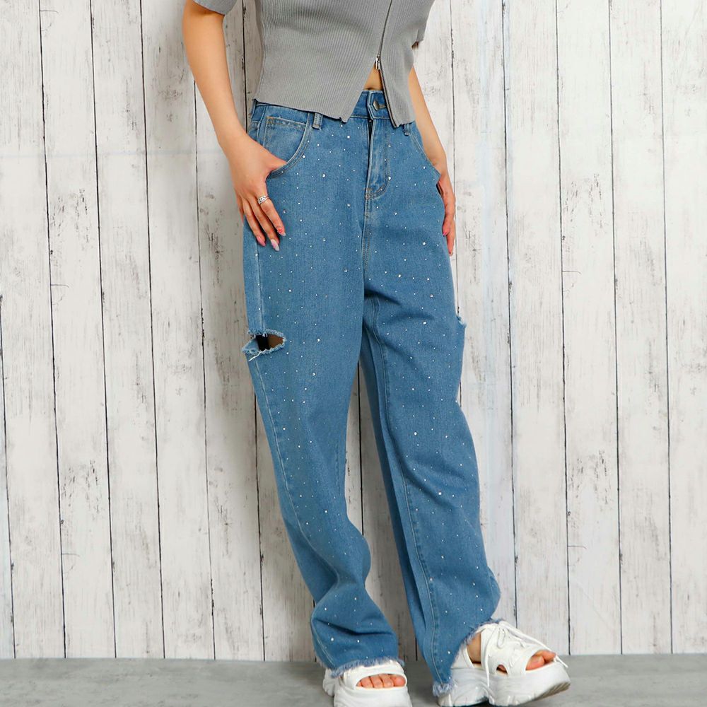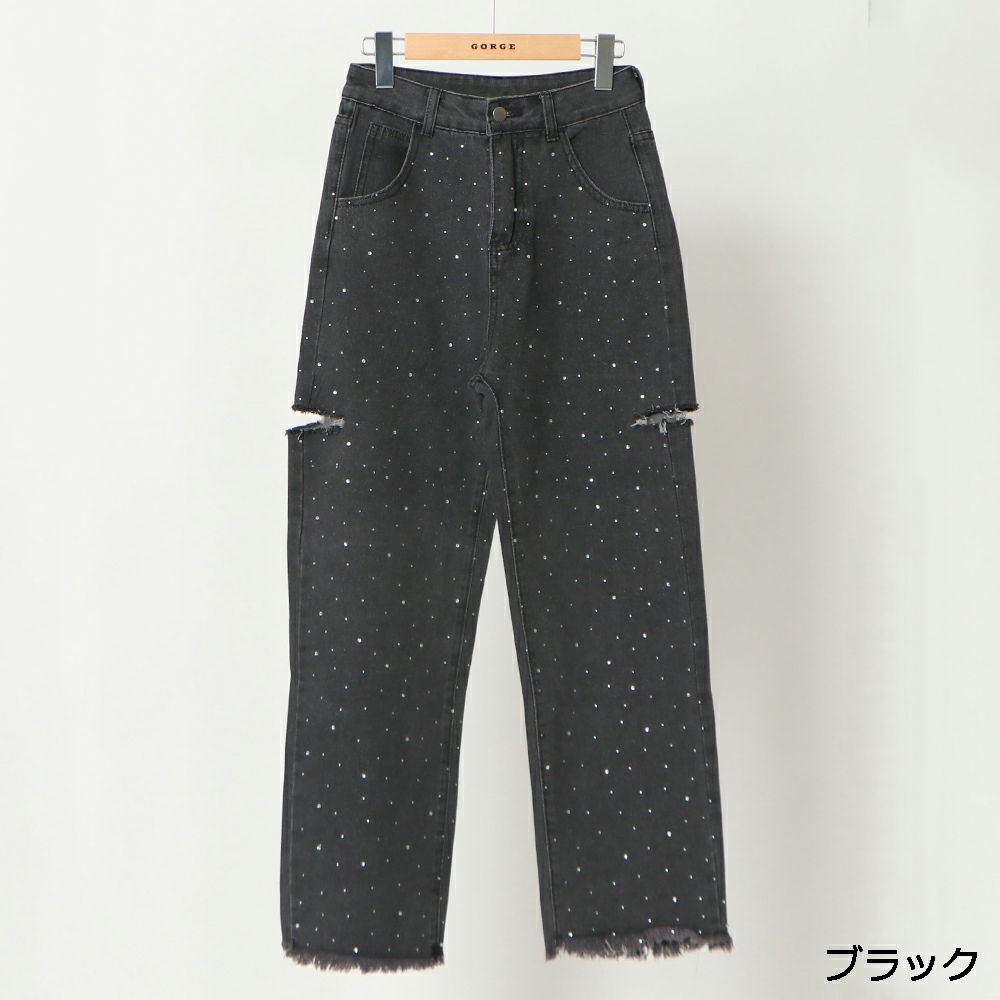 ラインストーンデニムパンツ