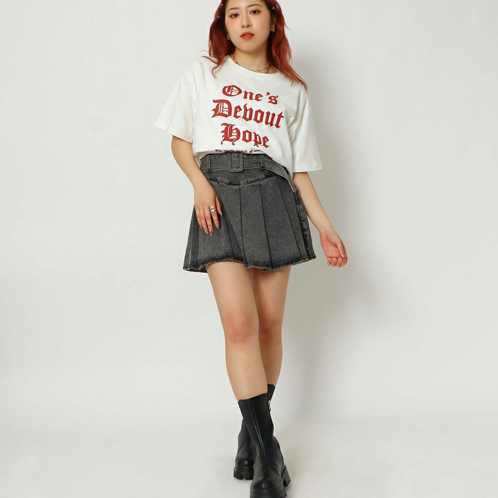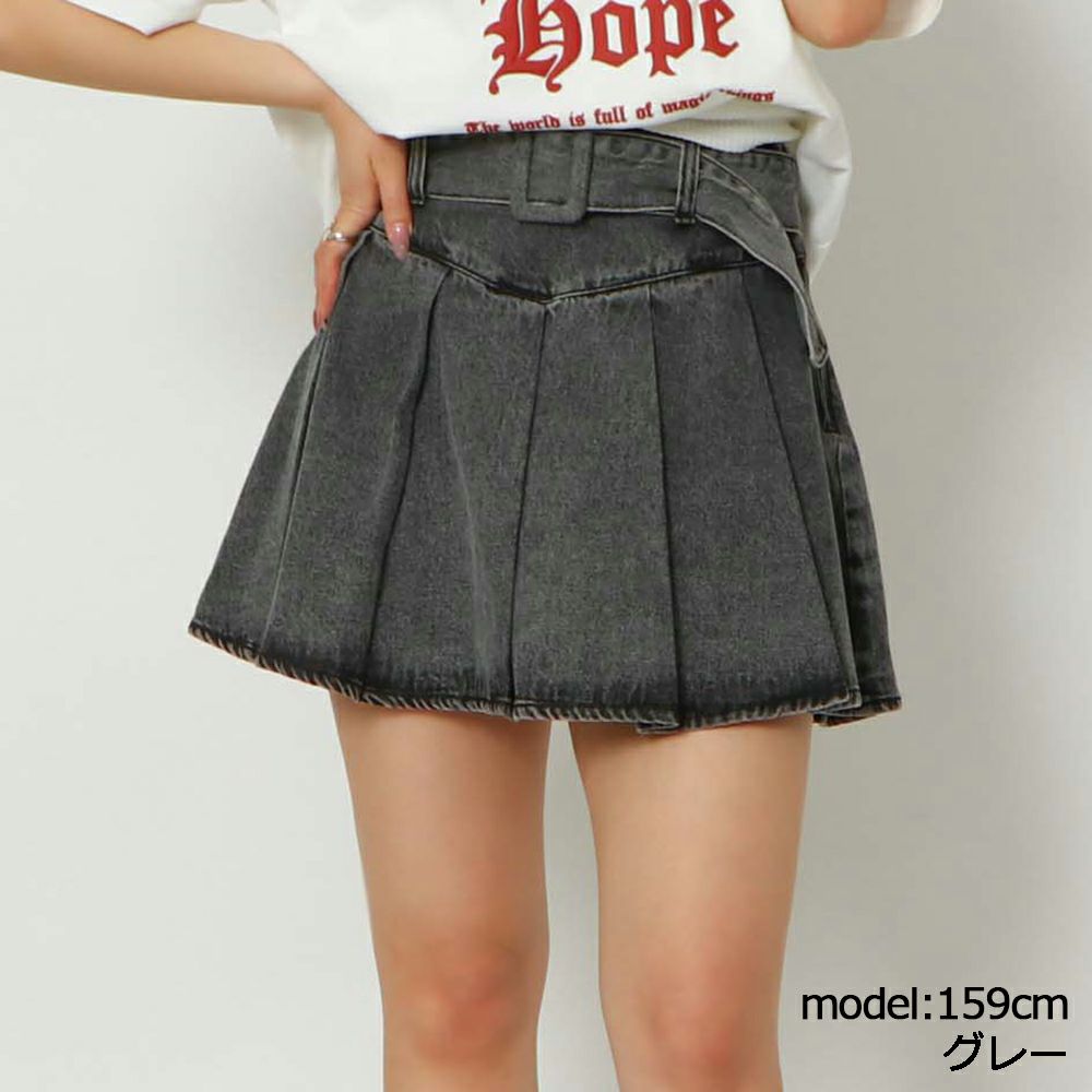 《ベルト×プリーツ》脚見せ映えデニムスカート