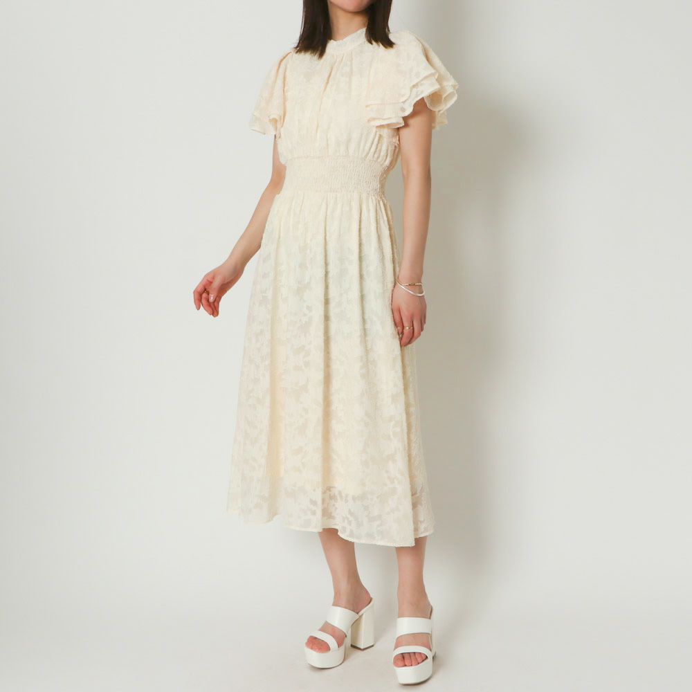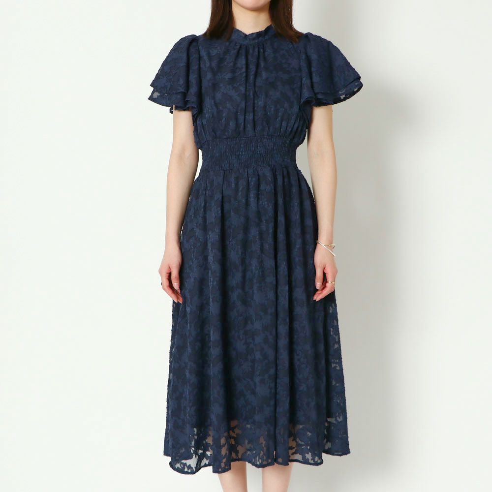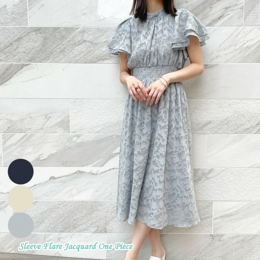 袖フレアジャガードワンピース