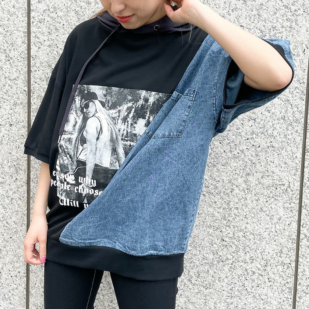 denim切替刺しゅうTOPS