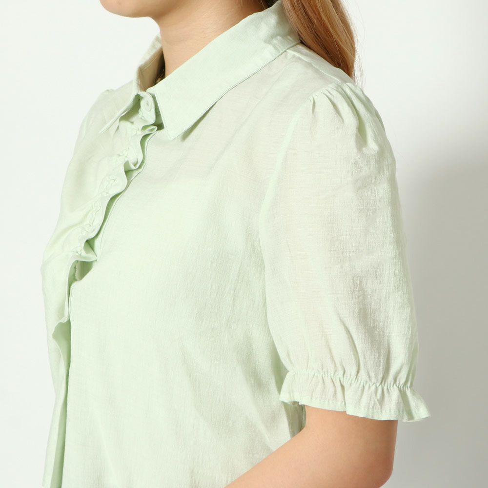 半袖柄フリルシャーリングワンピース