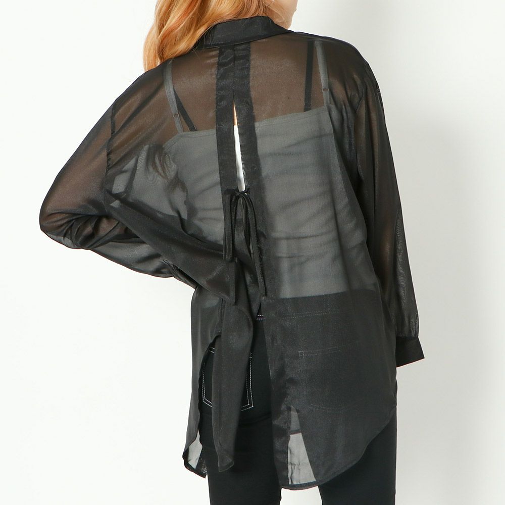 バックレースアップ透かしシャツ