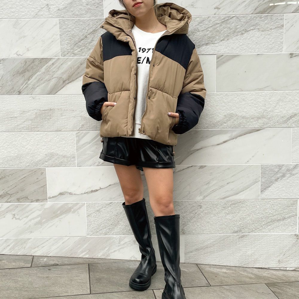 配色ファイバーダウンブルゾン
