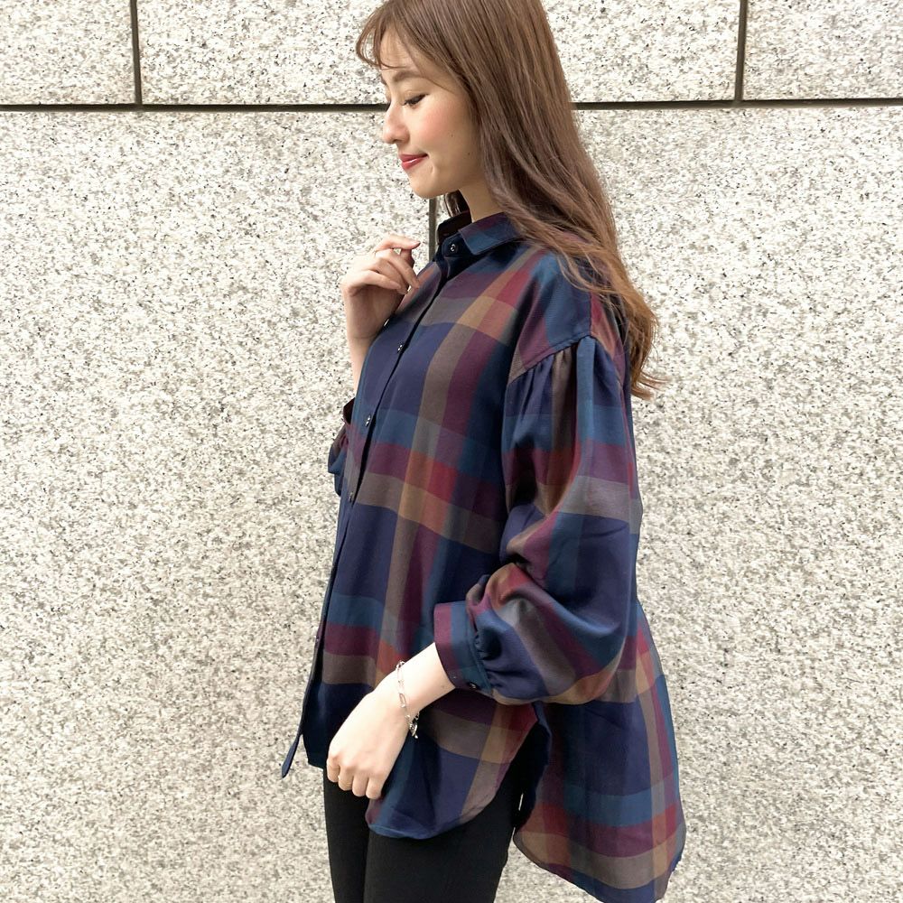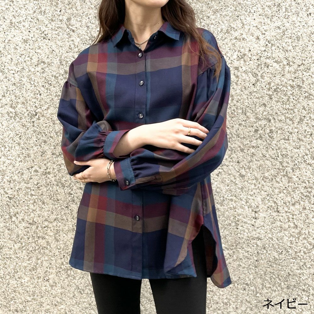 デカチェックバックレースシャツ