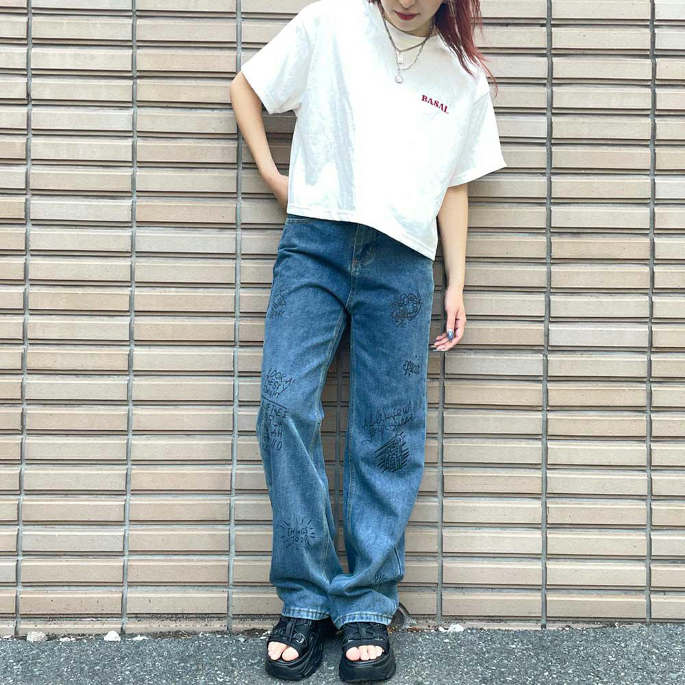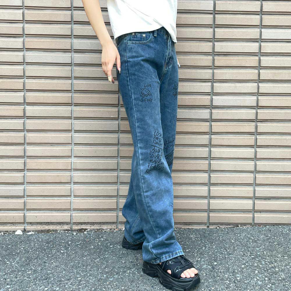 プリントデニムパンツ