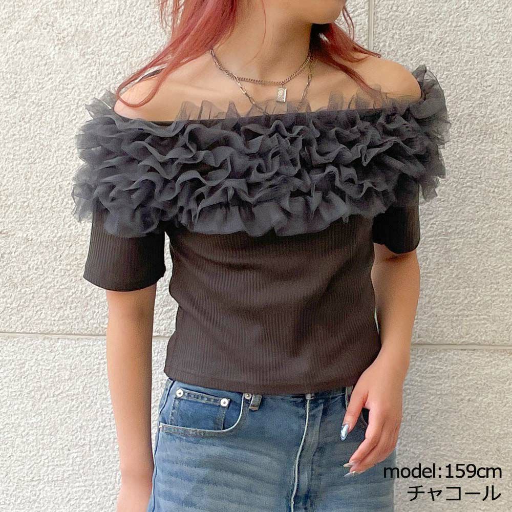 チュールオフショルTOPS