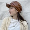 キャスケット 帽子 キャップ アクセサリー 合皮 合成皮革 シンプル フェイクレザー 秋 冬 2130095